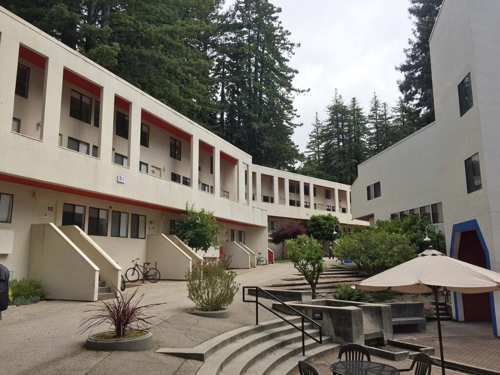 Moore 始終堅信,建築應作為日常生活的舞台,而非凌駕其上的權威結構。建築不應命令使用者,而應邀請參與、容納變動,甚至允許空間意義被重新書寫。他所追求的,是一種帶有戲劇性的公共性與空間的民主想像,建築在其中被視為社會實驗與文化對話的媒介。在此觀念驅動下,他於 1973 年於加州大學聖塔克魯茲分校完成的《克雷斯吉學院》(Kresge College, 1973)(圖 4),經常被視為一次溫柔卻鮮明的建築轉向,將使用者參與與社群生活置於設計核心,並試圖鬆動傳統校園建築中紀念碑式的孤立與制度權威。