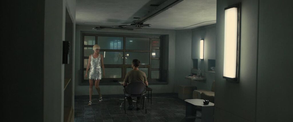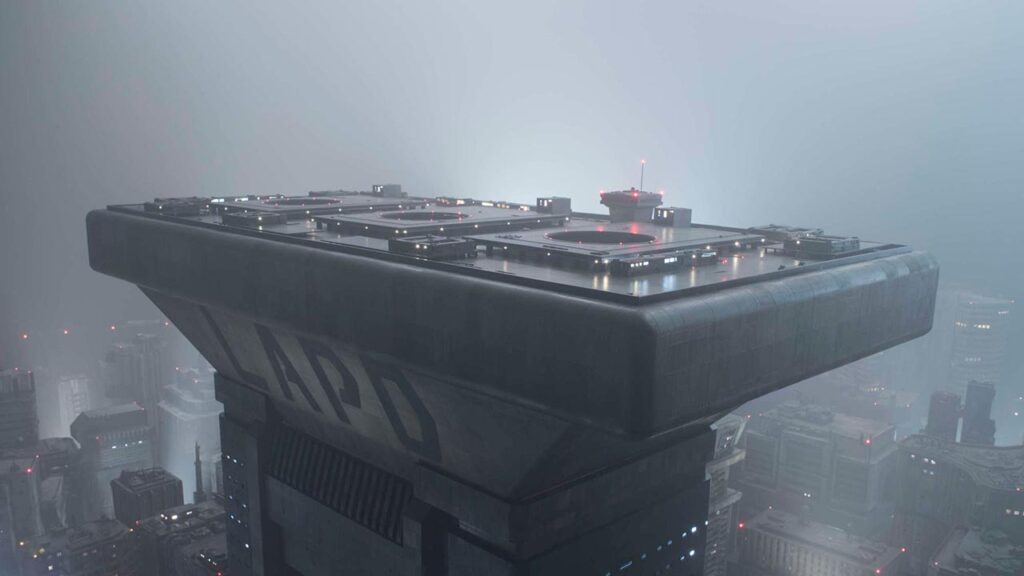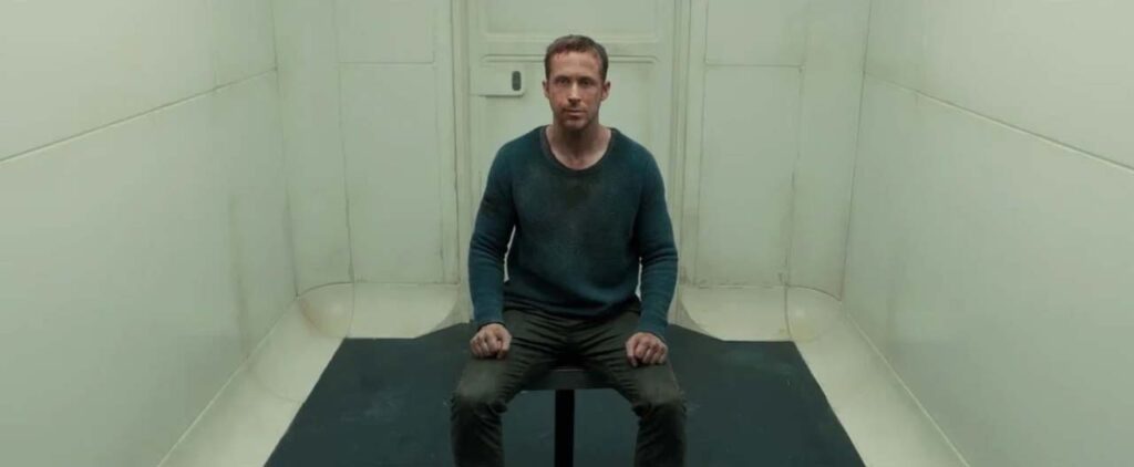 K 的行程起點位於高度合成且高度規訓的 LAPD 體系。基線測試所代表的空間條件,要求主體完全服從節奏、語言與程序,感知被壓縮至功能層級,情緒與記憶不被允許介入判斷。於此階段,K 能夠承受極高壓力,卻不需要理解周遭氛圍,行動僅回應指令與任務。
