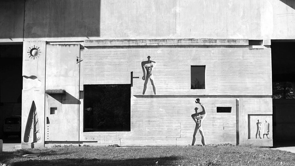 在長期的功能主義詮釋中,「住宅是居住的機器」經常被理解為效率的宣言。住宅被視為追求運轉順暢與性能最佳化的裝置,使用者被抽象化為可替換的人體尺度,模度人(Le Modulor)2遂成為空間設計的基準(圖 1)。形式美學建立於去裝飾化與幾何純化之上,比例與秩序被視為回應現代生活的主要手段。