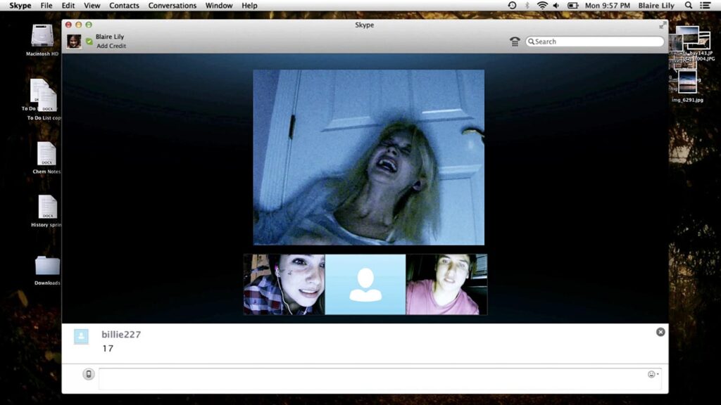 在數位介面中,此一狀態獲得具體形態。電影《解除好友》(Unfriended, 2014)(圖 3)將恐怖來源完全置於線上環境。失效的 Skype 視窗、無法登出的帳號、已死亡使用者留下的資料殘影,構成敘事推進的核心動力。數位痕跡在此不再是抽象符號,而以故障、延遲與殘留的形式持續介入現實。檔案並未消失,而在錯誤狀態中存活,形成無法被清除的存在。