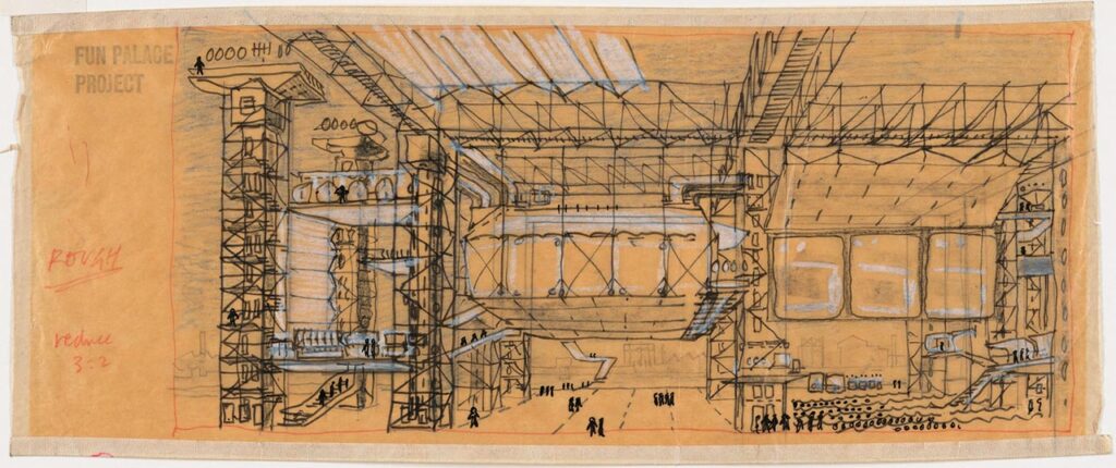 快樂宮的意義並不止於形式上的可變性,而在於其背後的社會與認知實驗。Price 將建築視為開放的行為平台,企圖藉由技術的可調性,讓參與者直接介入空間的生成過程。居住者與訪客不再只是被安排進既定空間,而是在操作、選擇與協作中形成自身的活動路徑。建築在此不提供完成的秩序,而提供可以被學習、被修正的條件。