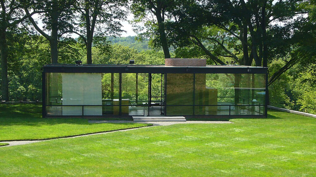 Johnson 的《玻璃屋》(Glass House, 1949)(圖 1)無疑是他建築生涯的代表性象徵,一件形式完美、語言精準、策略高超的文化產物。這座位於康乃狄克州紐卡納恩(New Canaan) 的透明幾何體,常被奉為美國現代主義的經典,被教科書與博物館視為理性與極簡的具象化。但從批判的角度審視,玻璃屋的成功,遠非純粹來自創新,而更像是一次精密設計的、帶有強烈投機色彩的文化挪用與再包裝。