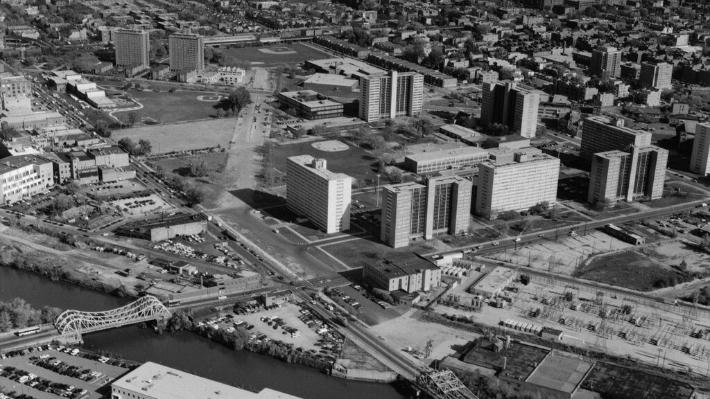 1950年代的美國城市正面臨戰後劇烈的轉型壓力。隨著郊區化浪潮的興起、汽車社會的快速擴張與「白人出走」(white flight)現象的蔓延,城市核心區逐漸老化,貧困問題與種族隔離日益嚴重。為了重建戰後的城市秩序與提升都市競爭力,聯邦政府於 1949 年通過《住房法案》(Housing Act, 1949),大力推動都市更新政策,投入龐大資金以「清除貧民窟」、重塑城市面貌、振興中心城區。然而,這些政策往往伴隨著結構性的排除與族群重組,實際執行中導致原有社區被迫拆遷、居民無法回遷,形成美國都市空間重構中的深層矛盾。