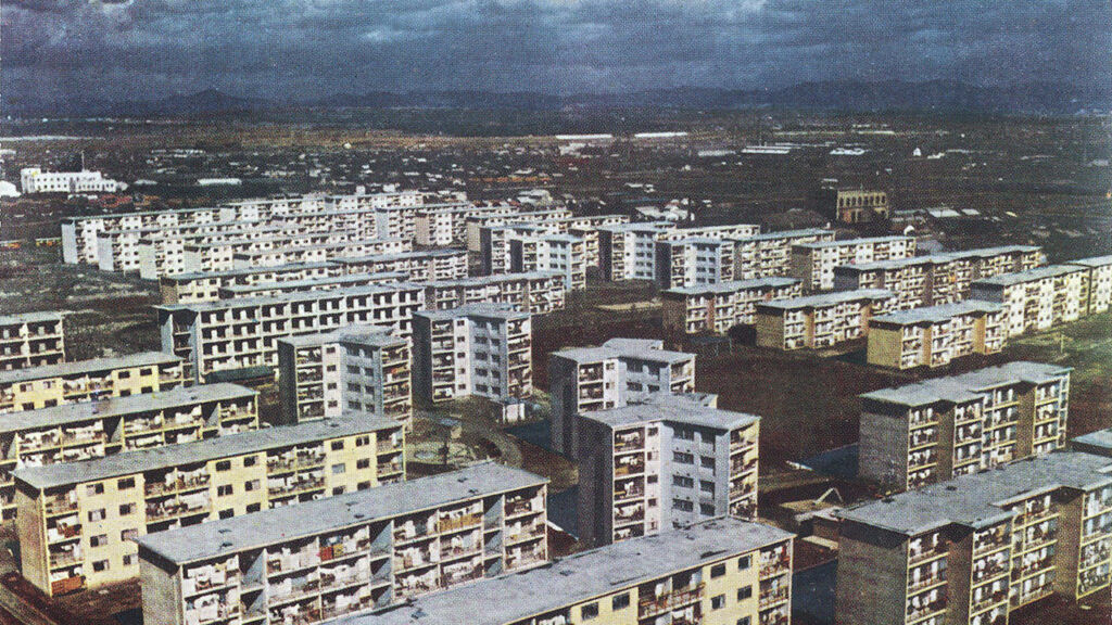 二戰結束後,日本在瓦礫中重建國家,面對快速城市化與嚴重的住宅短缺,政府推動大量國營住宅計畫,以穩定社會秩序與支持經濟成長。1950 至 1970 年代的高度經濟成長期中,「團地」成為戰後日本現代化的住宅象徵,是國家力量介入城市規劃與住宅生產的具體體現。在這樣的政策導向下,集合住宅不再只是居住形式,更成為國族復興與現代生活理想的空間載體。