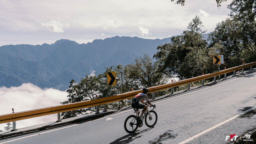 吳承泰在 2025 Formosa Xtreme Triathlon(FXT)騎乘路段推進,背景是中央山脈的層層山稜與雲海。新賽道從日月潭一路延伸到合歡主峰,近 200 公里的騎乘涵蓋長距離爬升、彎道與高海拔狀態,許多選手因此改用公路車應對。吳承泰騎乘的是 Scott Addict RC 系列公路車,輕量車架與靈敏操控讓他能在變化快速的山路維持節奏,最終完成個人 FXT 三連霸。圖片來源:FXT / WAYPOINT, formosaxtri.com。