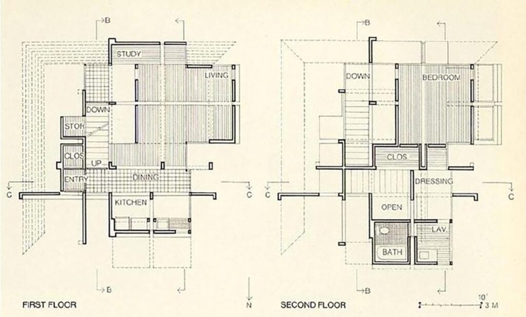 此一立場在其早期住宅實驗中表現得尤為明確。《第一至第十號住宅》(House I–X, 1967–1978)系列並未以居住舒適作為核心目標,而是將住宅轉化為形式語法的測試場。平面配置、結構元素與動線關係皆服從於抽象的幾何邏輯,而非日常生活的直覺需求。空間在此不回應行為,而反向塑造行為,迫使居住者在使用過程中意識到形式的主導性。