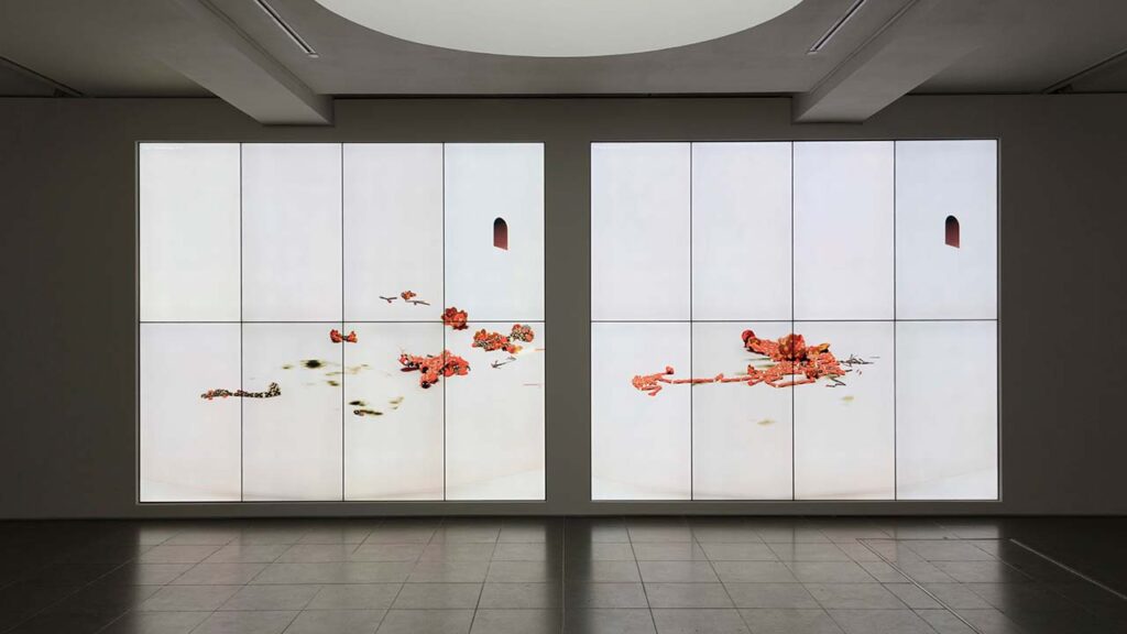 Cheng 的模擬世界以高密度的不穩定性構成,呈現焦慮、突變與系統崩潰的行為鏈,使觀眾必須投入長時間的注意力去理解其內在運算邏輯。此設定明確拒絕平滑性,使觀看進入艱難地形。觀眾面對不可預測的行為模式與不連續的事件生成,而非被動沉浸於柔性流動。然而,即便如此,Cheng 的實踐仍被認知資本主義的深層結構所吸納。