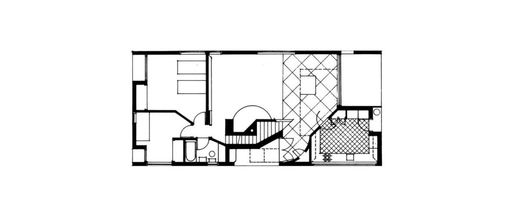 室內偏移與非線性秩序並未形成封閉系統,而是引導觀者向建築史的縱深延伸,使歷史語彙的併置成為另一個層面的核心操作。Venturi 在《建築的複雜與矛盾》中主張,歷史不需被清空才能創造新意,歷史也不必以純粹再現的方式重返當代,而能作為語言材料在場域中被重新編輯。住宅的空間配置正以物質實驗的方式證明這項立場(圖 6)。