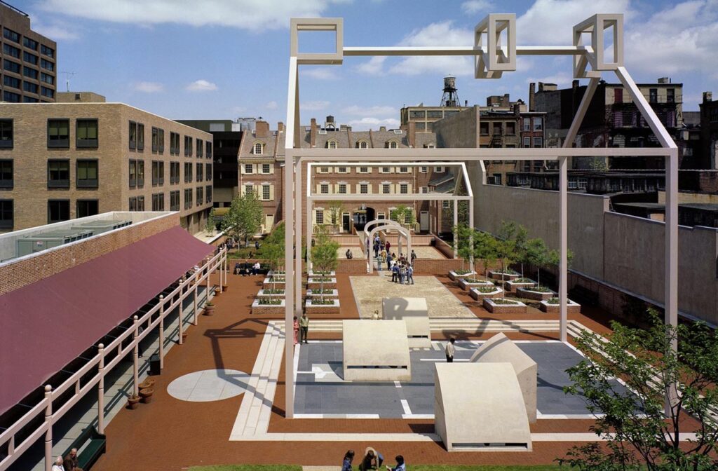 對 Jencks 的隱性回應則更為複雜。Venturi 從未否認後現代語法的必要性,也未否認歷史語彙的多義性。然後,他始終警惕後現代風格化的風險。他對商業建築中泛濫的後現代符號保持距離,也對被簡化的語彙感到不安。他明白 Jencks 所建構的後現代歷史敘事具有推廣效果,但也清楚後現代語言若被過度商品化,將不再具文化深度。Venturi 透過作品而非論戰,展現他對後現代語言的自我調整。他在後期設計中減弱戲劇性的併置,也減少表層符號的堆疊,讓語言回到城市、場所與使用者。這些轉變形成他對 Jencks 的靜默回應,使其作品不再輕易落入風格化的陷阱。