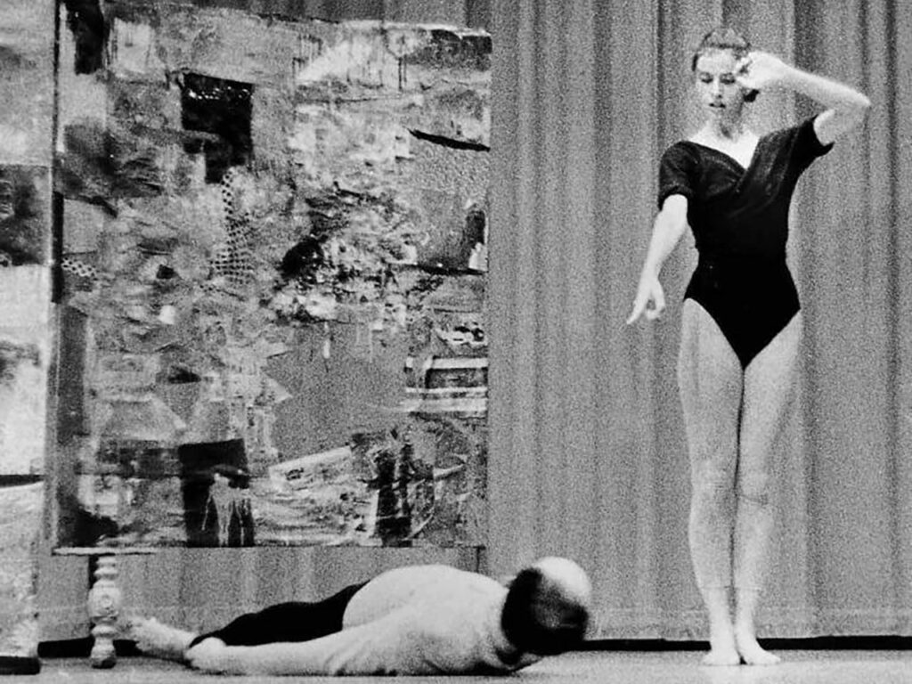 舞台因此不再呈現為被整合的整體畫面,而更接近多重事件的同時發生。觀眾無法依循單一焦點或預設路徑進行觀看,注意力必須在聲音、動作與視覺之間不斷轉移。意義並未被事先編排,而在觀看過程中被臨時建立。Rauschenberg 的角色因此不再是舞蹈的輔助設計者,而成為與音樂與舞蹈並列的生成來源,其作品在舞台上以自主狀態運作,參與事件的形成而非說明事件本身。