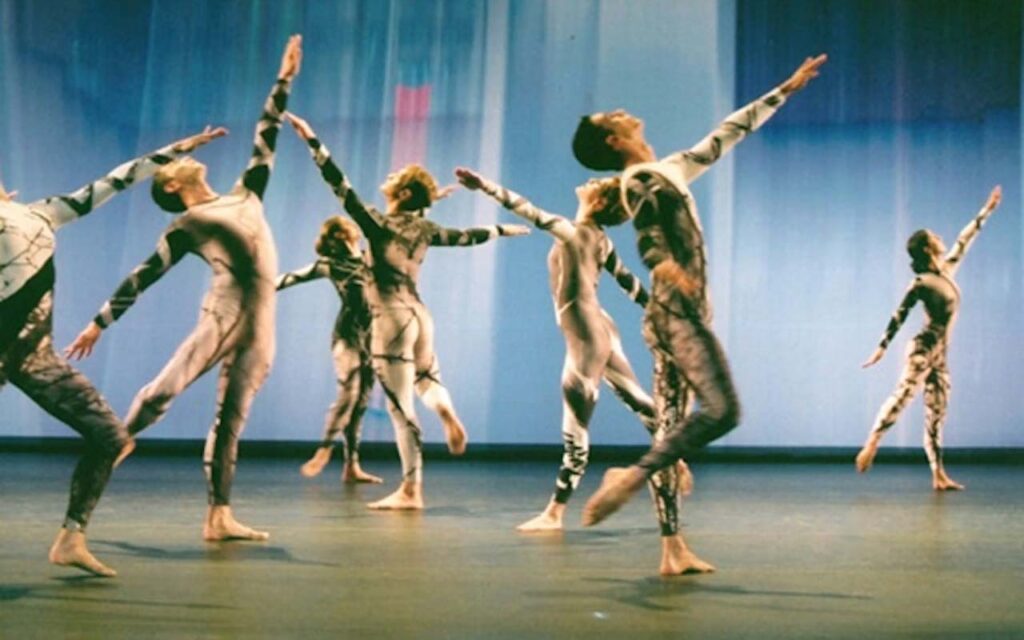 《Trackers》(1991)呈現出機遇編舞與電腦生成動作結構的直接效果。舞蹈動作展現非線性的節奏切換與不對稱的身體配置,運動之間缺乏流暢過渡,關節角度與方向轉換顯得突兀而精確。身體不再作為情感或敘事的載體,而轉為執行結構的介面。舞蹈語彙因此顯現出明確的數位特徵,動作由連續流動轉向離散拼接,時間與空間的關係被重新編排。