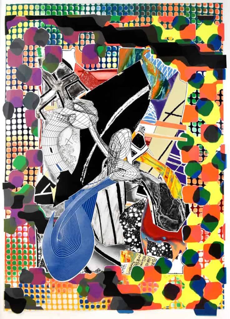 更深層的關聯出現在 Stella 後期創作的轉向之中。自 1980 年代起,他逐步離開平面極簡主義,進入以幾何擴張與空間扭轉為特徵的極繁階段。於《白鯨記》(Moby-Dick, 1985–1997)系列中,畫布被切割、彎折並向真實空間投射,幾何不再維持理性秩序,而在翻捲與交疊中形成近乎巴洛克的複雜構成(圖 9)。計算機輔助設計成為生成形式的重要工具,形式的來源不再是穩定網格,而是持續變動的演算關係。